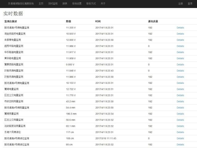 信息發(fā)布層信息發(fā)布采用網(wǎng)站發(fā)布和短信發(fā)布相結(jié)合的方式,其中信息發(fā)布網(wǎng)站可通過(guò)電腦或者手機(jī)使用Internet瀏覽。深層隧道排水區(qū)域液位在線監(jiān)測(cè)系統(tǒng)是如圖3所示東濠涌深隧優(yōu)化調(diào)度系統(tǒng)的重要組成部分,發(fā)布網(wǎng)站由主頁(yè)、實(shí)時(shí)監(jiān)視、報(bào)表、系統(tǒng)設(shè)置、聯(lián)系方式等幾部分組成,可通過(guò)發(fā)布網(wǎng)站查詢液位監(jiān)測(cè)點(diǎn)的具體位置,在線查詢即時(shí)數(shù)據(jù),以及使用報(bào)表查詢各個(gè)監(jiān)測(cè)點(diǎn)的歷史數(shù)據(jù),并可通過(guò)系統(tǒng)設(shè)置功能在線查詢?cè)O(shè)備工況,以及喚醒已休眠的設(shè)備。短信發(fā)布功能則利用短信平臺(tái)執(zhí)行,在達(dá)到警戒水位的時(shí)候,采用群發(fā)短信的形式將預(yù)警短信發(fā)送給預(yù)先在系統(tǒng)中設(shè)定好的調(diào)度管理人員,使得調(diào)度人員能夠及時(shí)采取調(diào)度措施。