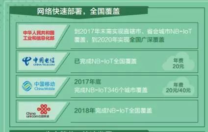 中國工業(yè)和信息化部在2017年6月初下發(fā)《關(guān)于全面推進移動物聯(lián)網(wǎng)(NB-IoT)建設(shè)發(fā)展的通知》,要求到2020年,中國NB-IoT網(wǎng)絡(luò)的基站規(guī)模要達到150萬個,實現(xiàn)對于全國的普遍覆蓋以及深度覆蓋。國內(nèi)三大電信運營商也加快了建設(shè)的步伐,預(yù)計到2017年底,全國部署超過50萬個NB-IoT基站。