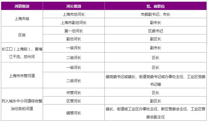 表4:上海市“河長制”方案中,河長及其黨政級(jí)別對(duì)應(yīng)情況