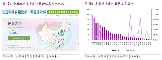 根據(jù)《“十三五”全國城鎮(zhèn)污水處理及再生利用設(shè)施建設(shè)規(guī)劃》,“十三五”期間,需整治1992個(gè)城市黑臭水體,總長度5904公里。地級(jí)及以上城市黑臭水體治理中控源截污涉及的設(shè)施建設(shè)投資約1700億元。