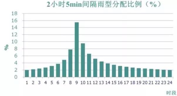 長歷時暴雨雨型主要用于整個城市排澇系統(tǒng),特別是包含排澇河道的系統(tǒng)設(shè)計,對于城市區(qū)域,一般選擇6-24小時作為長歷時的雨型統(tǒng)計時段。深圳全市域可分為九大流域,分屬三個不同的水文分區(qū),南山區(qū)屬于深圳灣流域,采用珠江三角洲雨型進行分配。