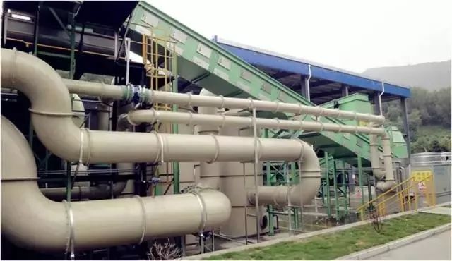 系統(tǒng)采用“機械預(yù)處理+生物水解+生物干化+后分選+厭氧處理”的EMBT工藝,垃圾經(jīng)過預(yù)處理和生物水解轉(zhuǎn)化為高濃度有機漿液和剩余可燃物,有機漿液進行厭氧消化處理產(chǎn)生沼氣,可燃物部分經(jīng)過生物干化后作為燃料利用,臭氣處理后達標(biāo)排放,厭氧出水排入已有的污水處理系統(tǒng)處理。2015年12月項目開工建設(shè),2016年9月達到設(shè)計處理規(guī)模。