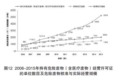 根據(jù)2016年全國大、中城市固體廢物污染環(huán)境防治年報,從2006年到2015年,全國持有危險廢物(含醫(yī)療廢物)經(jīng)營許可證的單位數(shù)目逐年增加。截止到2015年,全國各省(區(qū)、市)頒發(fā)的危險廢物(含醫(yī)療廢物)經(jīng)營許可證共2034份,其中江蘇省頒發(fā)許可證數(shù)量最多,共327份。