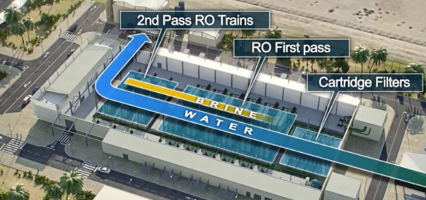 這個(gè)新的海水淡化廠建在一個(gè)現(xiàn)有反滲透海水淡化廠旁邊,占地面積約17.5公頃。太陽(yáng)能面板組將安裝在距離海水淡化廠1公里以外90公頃的土地上。