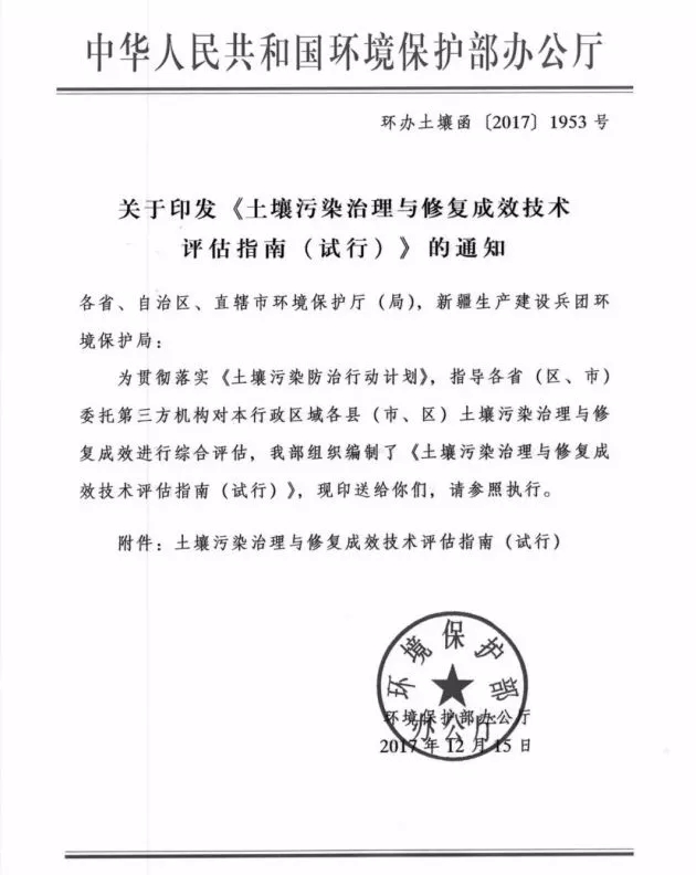 為落實(shí)《土壤污染防治行動(dòng)計(jì)劃》關(guān)于2017年底前出臺(tái)土壤污染治理與修復(fù)成效評(píng)估辦法的要求,土壤環(huán)境管理司(以下簡(jiǎn)稱(chēng)“土壤司”)組織編制了《土壤污染治理與修復(fù)成效技術(shù)評(píng)估指南》(以下簡(jiǎn)稱(chēng)《指南》)。