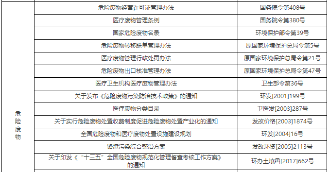 我國現(xiàn)行固體廢物污染防治主要標準規(guī)范