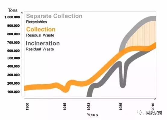 1960 年左右,二戰(zhàn)后的維也納經(jīng)濟復蘇,伴隨著人口增長,加上包裝行業(yè)新起,垃圾數(shù)量迅速增長。也是在那個時間段,維也納開始焚燒垃圾,并且在 1980 年代開始將垃圾區(qū)分為可回收和不可回收。此后垃圾數(shù)量有增無減,直到2016年才相對穩(wěn)定。