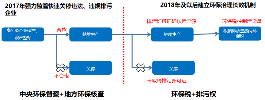 監(jiān)管力度空前:貫穿2017年環(huán)保督察、2018年實施的排污許可制度和環(huán)保稅,使得企業(yè)將接受更嚴的環(huán)境監(jiān)管,官員的問責(zé)制度也將常態(tài)化,倒逼企業(yè)的環(huán)保升級。