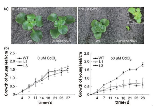 圖5Cd處理下SpHMA3對超積累植物生長的影響