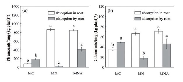 圖6不同化學試劑對植物根吸附和吸收Pb和Cd的影響