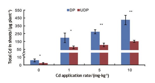 圖7去頂(DP)和不去頂(UDP)處理植物對Cd吸收