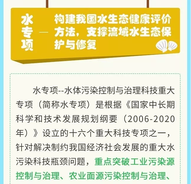 水專項(xiàng)——水體污染控制與治理科技重大專項(xiàng)(簡稱水專項(xiàng))是根據(jù)《國家中長期科學(xué)和技術(shù)發(fā)展規(guī)劃綱要(2006-2020年)》設(shè)立的十六個(gè)重大科技專項(xiàng)之一,針對解決制約我國經(jīng)濟(jì)社會發(fā)展的重大水污染科技瓶頸問題。