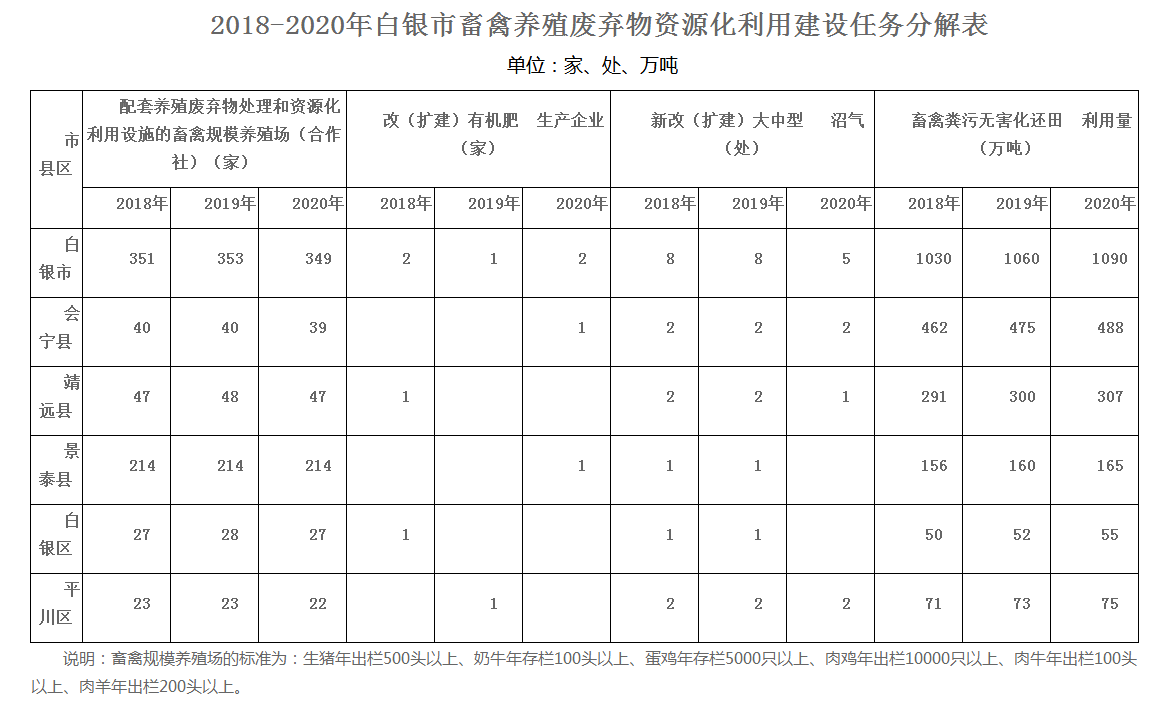 白銀市畜禽養(yǎng)殖廢棄物資源化利用工作方案(2018——2020年)