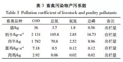標(biāo)準(zhǔn)生豬當(dāng)量折算方法:根據(jù)中國農(nóng)業(yè)科學(xué)院農(nóng)業(yè)環(huán)境與可持續(xù)發(fā)展研究所和環(huán)境保護(hù)部南京環(huán)境科學(xué)研究所編寫的我國第一次全國污染源普查畜禽養(yǎng)殖業(yè)產(chǎn)排污系數(shù)手冊,按主要畜禽產(chǎn)氮量系數(shù)折算如表3。