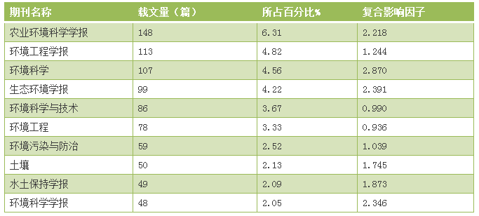 表2 世界土壤污染防治論文高發(fā)文期刊top 10