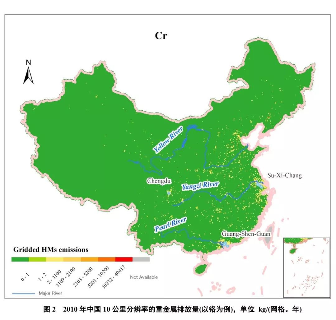 中國重金屬污染呈現(xiàn)出比較明顯的地域差異,中東部地區(qū)排放明顯高于西部,南部又比北部嚴(yán)重。被稱為“有色金屬之鄉(xiāng)”的湖南省,境內(nèi)礦采選,冶煉和化工企業(yè)多數(shù)分布于湘江流域,產(chǎn)生了嚴(yán)重的重金屬污染,導(dǎo)致湘江成為中國重金屬污染最嚴(yán)重的河流。此外,華南地區(qū)廣東省也有很高的排放量。