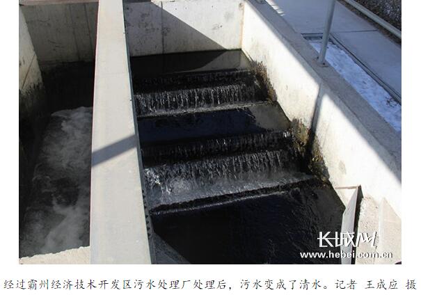 近日,記者在霸州經(jīng)濟技術(shù)開發(fā)區(qū)污水處理廠,看到幾米高的污水處理池中,泛著黃色的泡沫。然而,經(jīng)過二沉池、混凝沉淀池、懸浮濾料濾池、紫外線消毒渠等工藝處理后,污水卻變成清水從出水口流出。