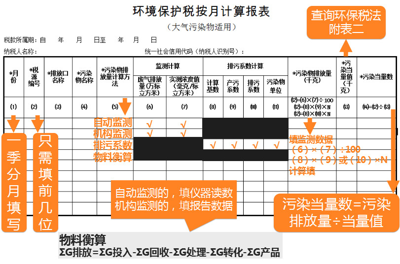 1、申報前,納稅人需自行計算每一排放口或沒排放口的應(yīng)稅大氣污染物,從大到小前三項污染當(dāng)量數(shù)再填表。(環(huán)保稅法第九條)