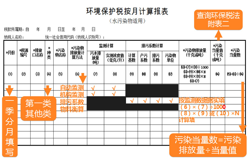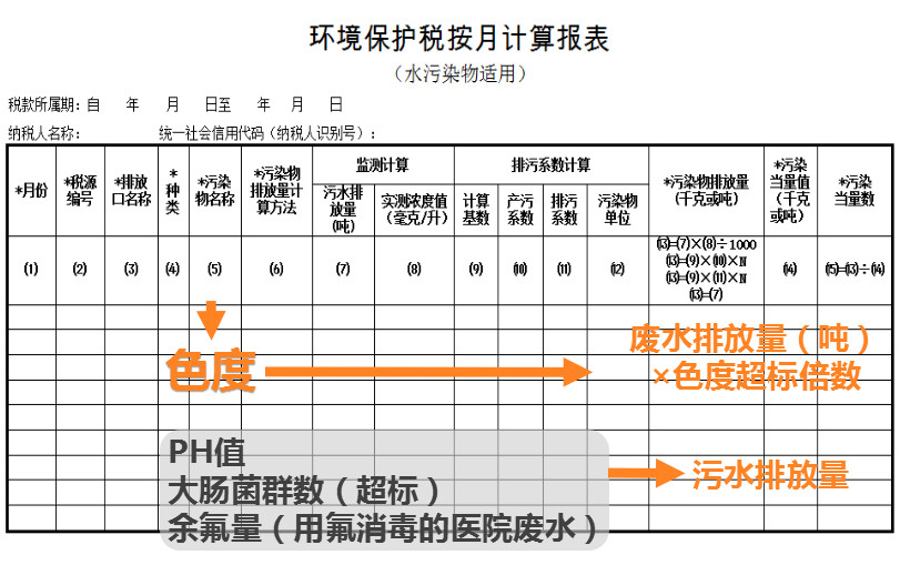 3. 環(huán)境保護納稅申報計算表(附表二)(水污染物適用):適用于污染物為水污染的申報計算。
