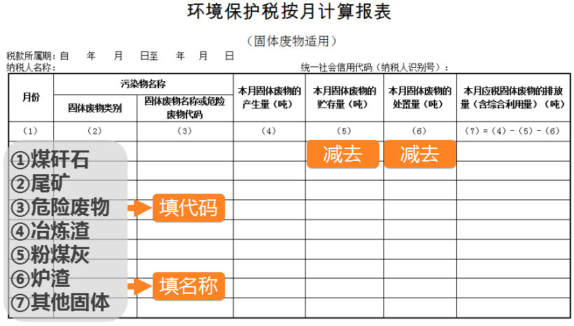 4. 環(huán)境保護納稅申報計算表(附表三)(固體廢物適用):適用于污染物為固體廢物的申報計算。