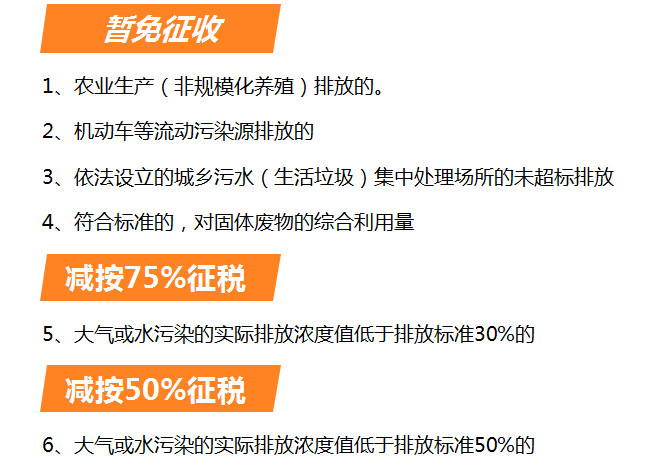(注:大氣污染物、水污染物、固體廢物均有減免事項,僅噪聲暫無減免事項。)