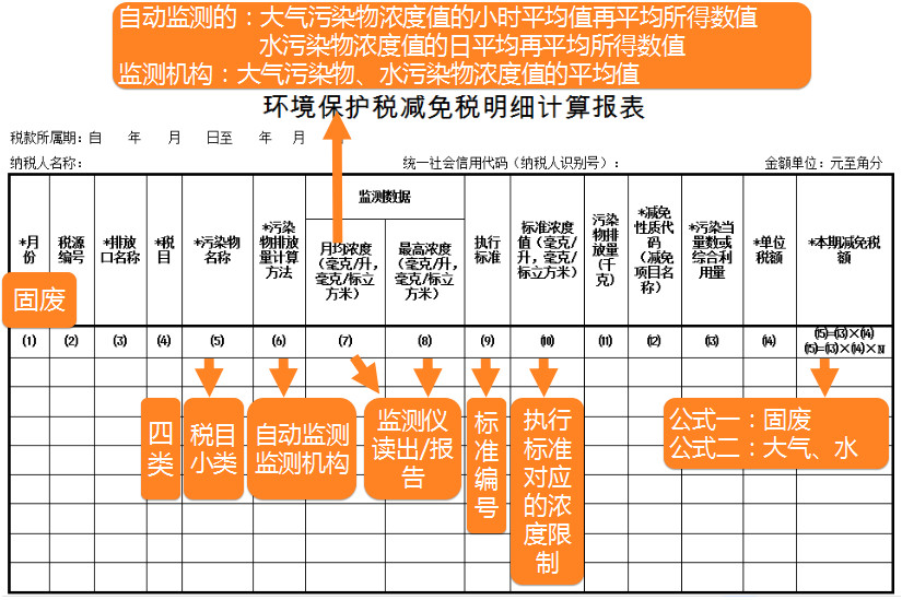 6. 環(huán)境保護納稅申報計算表(減免稅明細):適用于環(huán)境保護稅減免稅的申報計算。