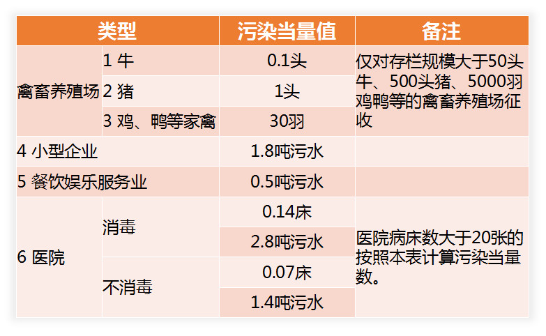 (本表僅適用于計算無法進行實際檢測或者物料衡算的禽畜養(yǎng)殖業(yè)、小型企業(yè)和第三產(chǎn)業(yè)等小型排污者的水污染當(dāng)量數(shù))
