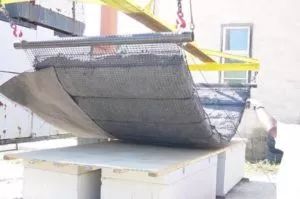 對(duì)于活性炭這類沉降性能較差的材料而言,是需要進(jìn)行預(yù)濕處理以去除材料內(nèi)空氣來幫助減少其水中浮力的。在施工過程中,如果采用此類沉降性能較差的材料,或是遇到水體流速較快不利于施工的情況,可以考慮使用水下擴(kuò)散器,蛤形或其他抓斗將覆蓋材料帶入水下釋放,幫助其更好的完成覆蓋。另外,使用土工織物包裹AquaGate一類的復(fù)合材料或其他活性復(fù)合材料進(jìn)行覆蓋,亦可以增加施工的可操作性。一般情況下,這種土工織物是通過機(jī)械設(shè)備或潛水員進(jìn)行水下覆蓋的。這類包裹著活性覆蓋材料的土工織物,例如ReactiveCoreMat材料,在通常情況下覆蓋材料容量較小,厚度也較薄。但如工程需要,也可以通過使用更厚的石龍材料以增大土工織物的覆蓋材料容量,例如:MarineMattress材料便是使用了這一技術(shù)。另外,鉸接式砌塊或其他防護(hù)墊,均可用來放置或包裹覆蓋材料。