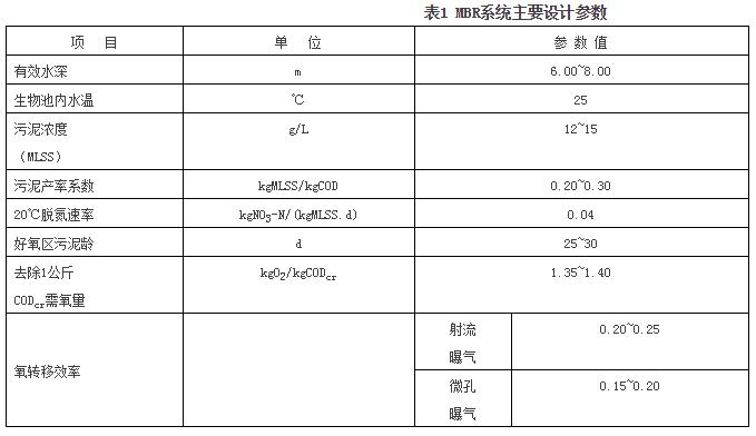 生化處理系統(tǒng)設計參數(shù)取值見表1。