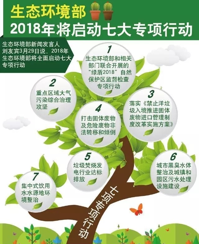 3月29日,生態(tài)環(huán)境部舉行了成立后的首場(chǎng)例行新聞發(fā)布會(huì)。新聞發(fā)言人劉友賓表示,中央環(huán)保督查工作將繼續(xù)推進(jìn)深化,再用三年左右時(shí)間完成第二輪中央環(huán)保督查全覆蓋。全面啟動(dòng)七大專項(xiàng)行動(dòng),作為打好“污染防治攻堅(jiān)戰(zhàn)”的標(biāo)志性工程。