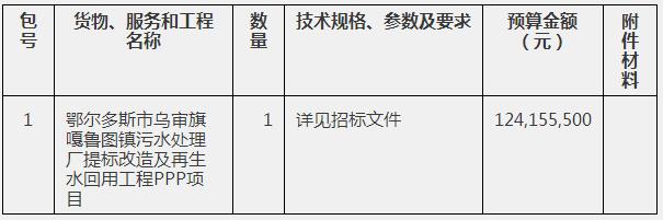 鄂爾多斯市烏審旗嘎魯圖鎮(zhèn)污水處理廠提標改造及再生水回用工程PPP項目公開招標,預算1.24億元。公告如下: