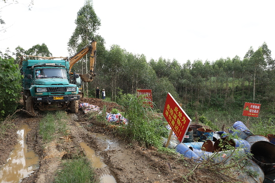 經(jīng)查,嫌疑人在利益的驅(qū)使下,自今年2月起從廣東江門市偷運含鎳危險物品到藤縣進行傾倒。