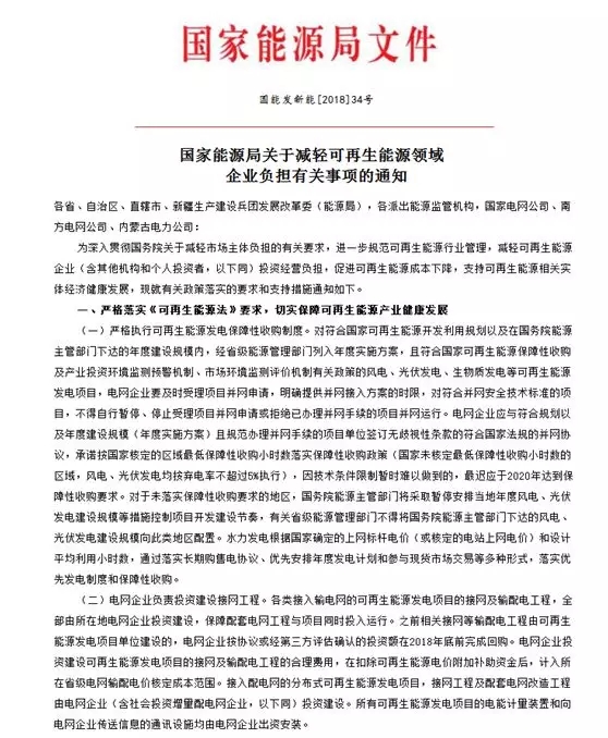 2018年4月26日,國家能源局官網(wǎng)公布《關(guān)于減輕可再生能源領(lǐng)域企業(yè)負(fù)擔(dān)有關(guān)事項(xiàng)的通知》,進(jìn)一步規(guī)范可再生能源行業(yè)管理,減輕可再生能源企業(yè)(含其他機(jī)構(gòu)和個(gè)人投資者)投資經(jīng)營負(fù)擔(dān),促進(jìn)可再生能源成本下降。