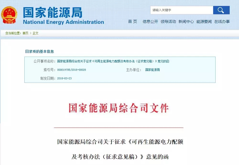 從去年十九大報(bào)告到今年兩會政府工作報(bào)告,中央多次明確表示要在生態(tài)文明的框架下實(shí)現(xiàn)能源生產(chǎn)和消費(fèi)的革命,到今年兩會一結(jié)束,國家能源局立即發(fā)布《可再生能源電力配額及考核辦法征求意見稿》,配額制在醞釀十年之后,總算與市場見面了。
