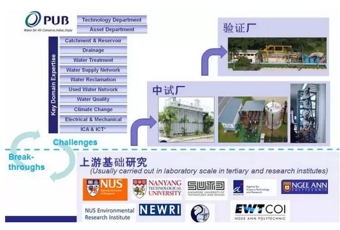 而如何將重大工程和科研投入,實實在在地轉為產(chǎn)業(yè)推動力,新加坡的實證研發(fā)和示范研發(fā)機制功不可沒。水處理技術從實驗室到中試再到生產(chǎn)規(guī)模使用,須經(jīng)歷一個長期過程,而新技術的應用,獲得業(yè)主的信任和試用的成本也很高,這也是水處理技術推廣難和推廣慢的問題所在。