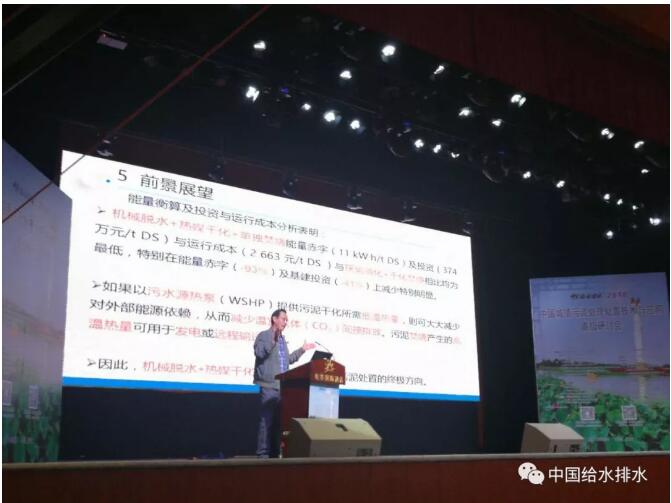 最后得到這樣一個結(jié)論,我們所推薦的工藝,機(jī)械脫水、熱媒干化、單獨(dú)焚燒,它在輸入能量節(jié)省、投資成本、運(yùn)行費(fèi)用方面都是最低的,特別是能量赤字可以減少27%,基建投資減少41%。這是大家最關(guān)心的,直接燒是不是成本高、能耗高?大家看看能耗還低了228度電。關(guān)鍵是能量輸入減少了27%,基建投資減少了41%。這個是非??捎^的。如果采用水源熱泵提供熱量,那么這個節(jié)省將更大,這個效益將是更加明顯?,F(xiàn)在主要是靠燒煤、燒油提供化石能量。前天早上我看到一個消息,美國紐約一個著名律師、生態(tài)活動家在紐約一公園焚燒自殺了,什么原因?他就是以他的死來抗議人類過多依賴使用化石燃料對生態(tài)造成嚴(yán)重破壞,以他的死來警告人類。所以我們在座的也應(yīng)該明白為什么。