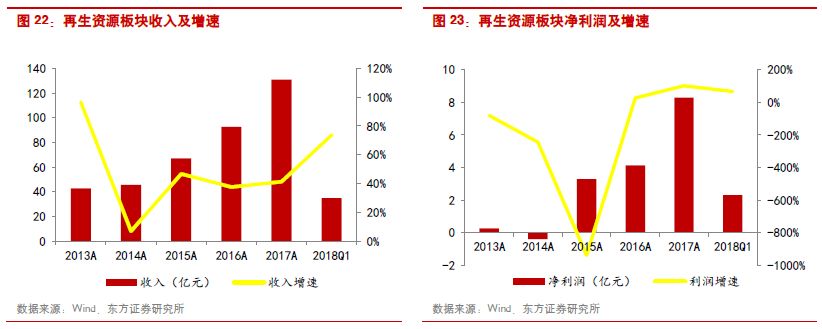 再生資源:再生資源板塊2017年收入增速為41.37%,歸母凈利潤增速達到100.33%。個股層面,受益于鈷金屬的漲價,格林美的業(yè)績實現快速增長;而中再資環(huán)的增長則主要來自于拆解量的增長和清理庫存。