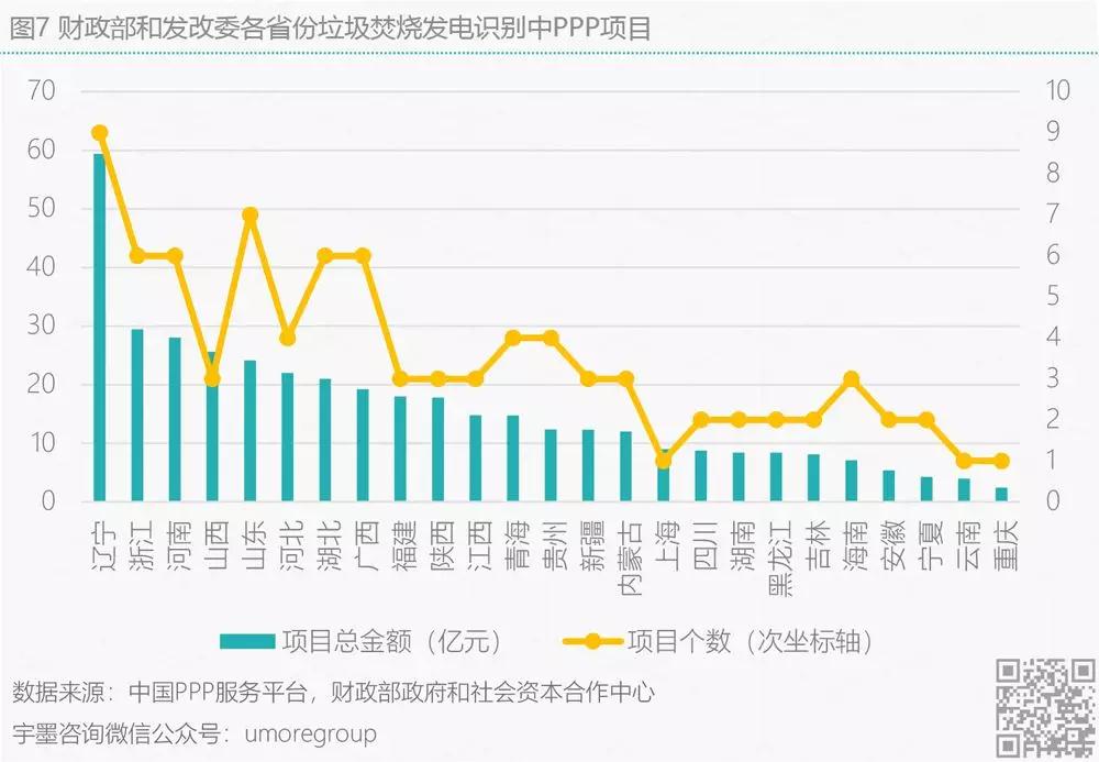 宇墨統(tǒng)計了財政部各省份PPP項目儲備庫中還在識別階段的垃圾焚燒發(fā)電類PPP項目以及發(fā)改委各省份垃圾焚燒發(fā)電發(fā)起中的PPP項目,目前來看這些項目還處于財政部門、發(fā)改委部門、行業(yè)主管以及社會資本共同判斷該項目本身是否與PPP模式相契合的階段,如果判定不契合將不會采用PPP模式。通過該數(shù)據(jù),可預先了解對于垃圾焚燒發(fā)電有采購需求的省份,綜合來看,遼寧、浙江、河南‘、山西、山東這五個地方在垃圾焚燒發(fā)電領域項目機遇較多。從項目發(fā)起地市來看,在一線城市發(fā)電廠建設逐漸飽和的情況下,目前垃圾焚燒發(fā)電的未來項目機遇多分布在國內各省會的三四線城市。