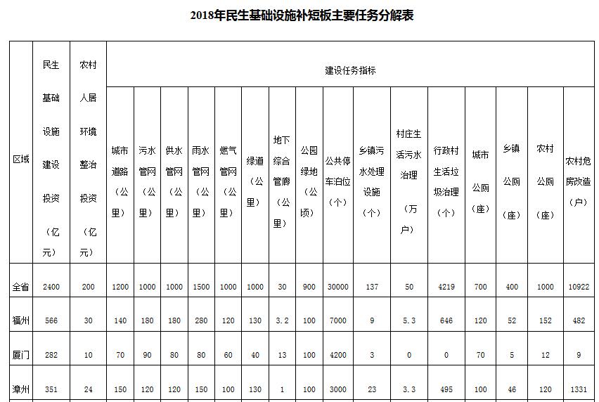 日前,福建印發(fā)《2018年民生基礎(chǔ)設施補短板實施方案》。