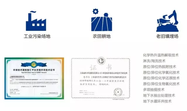 引進(jìn)日本、美國先進(jìn)修復(fù)技術(shù),結(jié)合國內(nèi)情況進(jìn)行自主研發(fā),擁有多項(xiàng)核心修復(fù)技術(shù)。廣泛適用于各類重金屬和有機(jī)污染場地。榮獲“國家重點(diǎn)環(huán)境保護(hù)實(shí)用技術(shù)”和“百強(qiáng)環(huán)保技術(shù)”等多項(xiàng)榮譽(yù)。