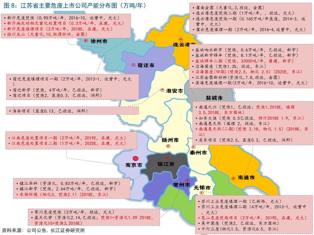 剖析長江流域及江蘇上市公司危廢產(chǎn)能分布
