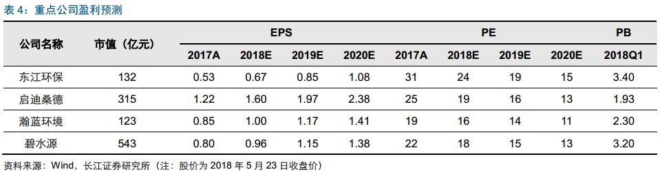 危廢整治為江蘇等地化工企業(yè)復(fù)工條件,隨著清廢2018及環(huán)保督查“回頭看”展開,行業(yè)進(jìn)入量價(jià)齊升的高景氣階段,長江流域危廢合格處置需求存在翻倍空間,戰(zhàn)略性看好危廢2018年投資機(jī)會,推薦東江環(huán)保及港股水泥窯處置危廢龍頭。東江環(huán)保作為危廢行業(yè)龍頭,人員/技術(shù)儲備位居行業(yè)前列,目前走出廣東布局全國的趨勢明確。目前其在長江沿線11個(gè)省份投運(yùn)產(chǎn)能37.9萬噸(江蘇/浙江/湖北/江西分別為約11.8/9.51/8/8.6萬噸),占其總產(chǎn)能的28%左右;在建及擬建產(chǎn)能93.4萬噸(江蘇/浙江/湖北/江西/四川分別為15.2/2/13.2/28/35萬噸),占其在手產(chǎn)能的57%左右,有望受益長江清廢行動(dòng)。預(yù)計(jì)公司2018-2020年實(shí)現(xiàn)扣非歸母凈利潤5.9/7.6/9.6億,扣非增速為25%/27%/28%,對應(yīng)的PE分別為25x/19x/15x,維持“買入”評級。