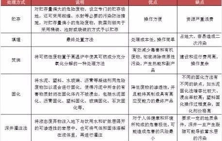 無害化處置包括物化、貯存、焚燒、填埋、固化、深井灌注法、海洋傾倒法、遠(yuǎn)洋焚燒法、土地耕作法等多種方法?,F(xiàn)階段我國主要采用焚燒和安全填埋兩種技術(shù)手段對危險廢物進行最終處置。相對資源化處置,這兩種方式都有較高的專業(yè)技術(shù)要求和環(huán)保要求,前期投入較高,投資回收期較長,較難吸引社會資本投資,主要由政府投資建設(shè),是目前較為緊缺的處置方式。隨著危廢管理政策趨嚴(yán),未來無害化處置的需求將進一步提高,而掌握焚燒設(shè)施和填埋場的企業(yè)將在未來的行業(yè)競爭中占據(jù)顯著優(yōu)勢。