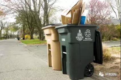 美國的單物流投放方式:將所有可回收物投入綠桶,垃圾則會進入棕桶。