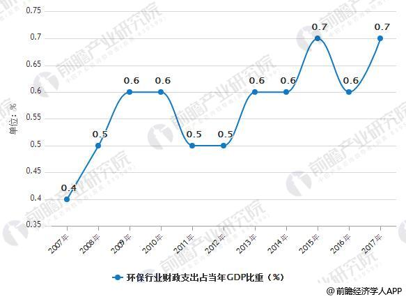 2007-2017年環(huán)保行業(yè)財政支出占當年GDP比重情況