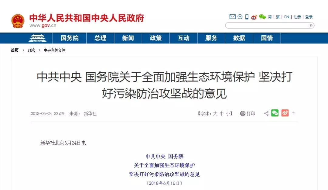 中共中央 國務院 關于全面加強生態(tài)環(huán)境保護堅決打好污染防治攻堅戰(zhàn)的意見