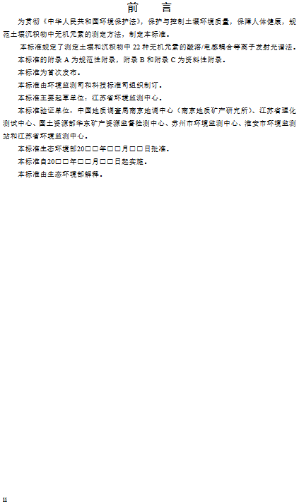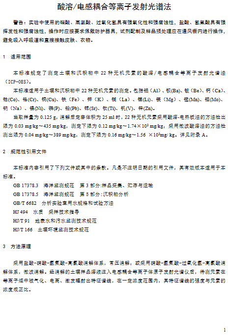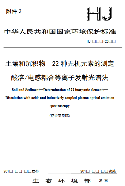 為貫徹《中華人民共和國環(huán)境保護法》,保護與控制土壤環(huán)境質(zhì)量,保障人體健康,規(guī)范土壤沉積物中無機元素的測定方法,生態(tài)環(huán)境部印發(fā)《土壤和沉積物 22種無機元素的測定 酸溶/電感耦合等離子發(fā)射光譜法(征求意見稿)》,詳情如下: