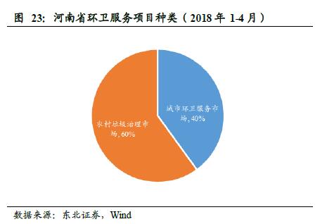 農(nóng)村環(huán)衛(wèi)市場(chǎng)開(kāi)啟進(jìn)行時(shí)。以河南省為例,據(jù)環(huán)境司南,2018年1-4月河南省共開(kāi)標(biāo)189個(gè)環(huán)衛(wèi)服務(wù)項(xiàng)目,新增首年服務(wù)金額10.72億元,其中約71個(gè)涉及農(nóng)村垃圾治理,新增首年服務(wù)金額6.38億元,開(kāi)標(biāo)項(xiàng)目包括“扶溝縣、太康縣、鄢陵縣、滎陽(yáng)市、潢川縣、建安區(qū)”等15個(gè)區(qū)縣(市)的全域農(nóng)村垃圾治理項(xiàng)目。農(nóng)村環(huán)衛(wèi)項(xiàng)目平均比城鎮(zhèn)環(huán)衛(wèi)項(xiàng)目首年服務(wù)金額高,農(nóng)村環(huán)衛(wèi)項(xiàng)目平均服務(wù)費(fèi)用為899萬(wàn)元/年,城鎮(zhèn)環(huán)衛(wèi)項(xiàng)目平均服務(wù)費(fèi)用僅為368萬(wàn)元/年。