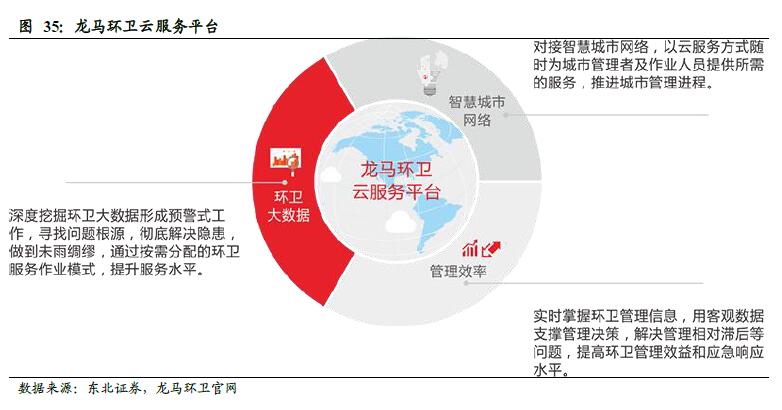 智慧環(huán)衛(wèi)助于實(shí)現(xiàn)人力物力資源的有效調(diào)度,提高行業(yè)效率。智慧環(huán)衛(wèi)依托物聯(lián)網(wǎng)技術(shù),構(gòu)建“物聯(lián)網(wǎng)+環(huán)衛(wèi)”商業(yè)模式,實(shí)現(xiàn)了對(duì)環(huán)衛(wèi)工人和環(huán)衛(wèi)設(shè)備的實(shí)時(shí)監(jiān)控,提高管理人員與作業(yè)人員溝通效率,及時(shí)分配任務(wù)、提高突發(fā)事件應(yīng)急能力,大大提高企業(yè)管理效率,有效降低管理成本。目前,環(huán)衛(wèi)一體化項(xiàng)目基本已經(jīng)接入智慧環(huán)衛(wèi)系統(tǒng)。以龍馬環(huán)衛(wèi)為例,公司的“智慧環(huán)衛(wèi)”管理系統(tǒng),系統(tǒng)覆蓋五個(gè)模塊,智慧化實(shí)現(xiàn)監(jiān)控、指揮調(diào)度、垃圾分類收集運(yùn)輸、成本分析等管理職能,即人員管理、車輛管理、設(shè)備管理、數(shù)據(jù)中心、業(yè)務(wù)管理等。在項(xiàng)目運(yùn)營(yíng)中形成監(jiān)控收集—分析—處理—統(tǒng)計(jì)—預(yù)測(cè)—規(guī)劃的管理模式,實(shí)時(shí)掌握環(huán)衛(wèi)管理信息,深度挖掘環(huán)衛(wèi)大數(shù)據(jù),用客觀數(shù)據(jù)支撐管理決策,形成預(yù)警式工作,徹底解決隱患,提高環(huán)衛(wèi)管理效率和應(yīng)急響應(yīng)水平。對(duì)環(huán)衛(wèi)服務(wù)所涉及到的人、物、事構(gòu)建全時(shí)段、全方位、前后臺(tái)無(wú)縫對(duì)接、精準(zhǔn)高效的服務(wù)系統(tǒng),為項(xiàng)目實(shí)現(xiàn)環(huán)衛(wèi)一體化奠定堅(jiān)實(shí)的技術(shù)基礎(chǔ)。