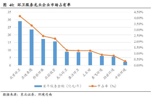 環(huán)衛(wèi)服務(wù)市場(chǎng)民企比例高,利于市場(chǎng)效率的提升。十八屆三中全會(huì)之后,環(huán)衛(wèi)服務(wù)市場(chǎng)化趨勢(shì)越發(fā)明顯,很多城市開(kāi)放環(huán)衛(wèi)市場(chǎng)或提上議程。據(jù)E20數(shù)據(jù)平臺(tái),民企市占率約為73%,國(guó)企僅占18%,高效率的國(guó)企市場(chǎng)占比占據(jù)絕對(duì)優(yōu)勢(shì),民企和國(guó)企共同競(jìng)爭(zhēng)發(fā)展。充分市場(chǎng)化加速了環(huán)衛(wèi)行業(yè)的發(fā)展進(jìn)程,具有先發(fā)優(yōu)勢(shì)的規(guī)模較大的企業(yè)有望憑借優(yōu)勢(shì)擴(kuò)大市場(chǎng)份額。